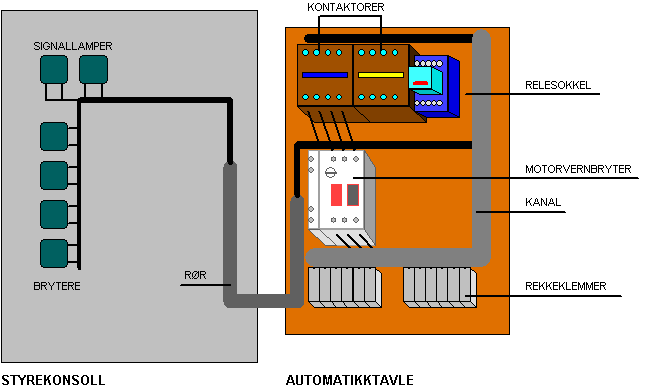 Øvelsesbrettet er bygget opp av en liten automatikktavle.