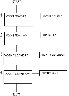 bryter B. (Bryter B = 1) Når vognen kjører framover, skal denne stoppe når betingelsen