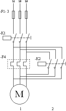 (K2) blir lagt inn først. Når denne er inne kan motoren startes. Hjelpekontaktoren bør legges ut av en tidsforsinkelse