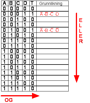 kan sette opp en grunnlikning ved hjelp av en sannhetstabell. Grunnlikningen