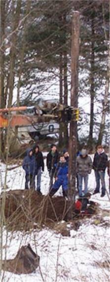 Gravemaskinen har gravd hullene, og satte opp mastene og bardunfestene