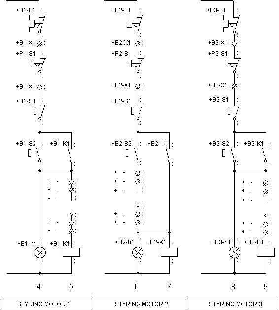 likevel ikke stoppe dersom M3 starter når den går. M3 skal bare kunne kjøre dersom M1 ikke går. Det skal være nødstoppbryter koplet til alle motorene.