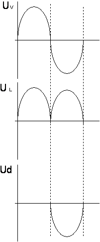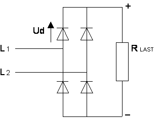 Denne brolikeretteren produserer 2 bølger med likespenning for hver periode av vekselspenningen.