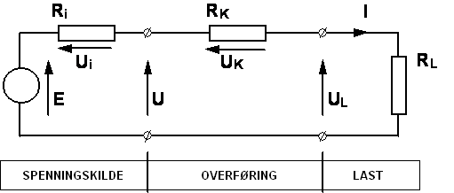 strømkrets settes sammen av regneskjemaene for spenningskilden, kabelen, og lasta. Disse regneskjemaene settes
