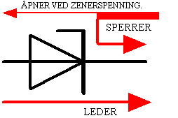 Zenerdioden fungerer som en vanlig diode for strømmer som