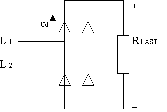 Denne brolikeretteren produserer 2 bølger med likespenning for hver periode av vekselspenninga.