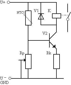 potensiometeret (Rp) I denne kretsen er det satt inn en NTC-termistor som føler.