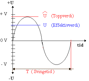 U = Effektivverdi.(Gjennomsnittet av spenninga)