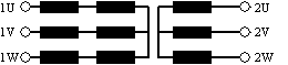 eksemplet vises viklingssettet for en motor med to hastigheter. Kopler man