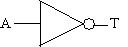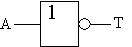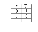 sannhetstabell som viser virkemåten, samt de to forskjellige tegnene som kan