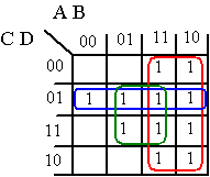 Karnaugdiagrammet bygger på teorem nr 6 i Boolsk Algebra:  |