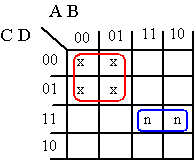 2. Man kan sette opp et enkelt Karnaugdiagram