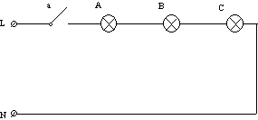 koplinga mellom bryter a og de tre lampene. |