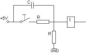 Den vanligste måten å ordne dette på, er at vi monterer en kondensator over brytergapet. Dermed får ikke inngangen signalet sitt før kondensatoren er ladet opp.  |