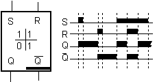 En RS- vippe som inneholder denne kretsen har et eget symbol. Den kan også beskrives ved hjelp av et diagram som viser vippens funksjon.  |