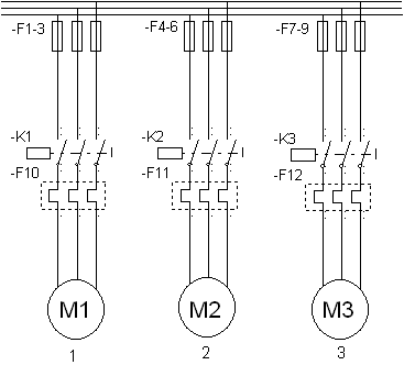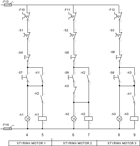 De tre motorene i tegningen forriglet mot hverandre. Ved å studere tegninga skal du kunne svare på spørsmålene.