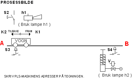 til pkt. B ved at operatøren trykker på bryteren S.  I pkt B blir vognen tømt av en sylinder.