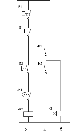 (K2) blir lagt inn først. Når denne er inne kan motoren startes.  Hjelpekontaktoren bør legges ut av en