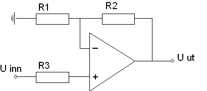 Utgangspenningen blir positiv når inngangsspenningen er positiv.