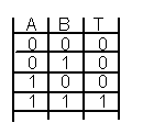 kontaktplankopling av funksjonen, og nederst finner vi en sannhetstabell som
