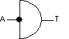 sannhetstabell som viser virkemåten, samt de to forskjellige tegnene som kan