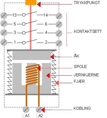 jernkjernen åket til seg. Kontaktsettet, som er festet til åket, vil følge