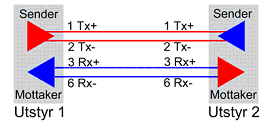 figuren under. Dersom man benytter rett (ikke-krysset) kabel vil sender gå mot