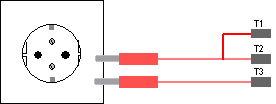 IT-nettet må du benytte måleledninger. Terminalene T1 og T2 på instrumentet