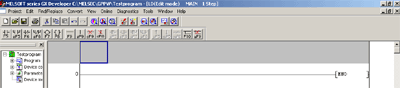 Du har nå laget et program for start og stopp av en enkel utgang på PLS- maskinen din. Et slikt program kalles også for en RS- vippe, eller for en Hukommelse. Nå må du Konvertere dette programmet, slik at det blir oversatt til et språk som PLS- maskinen din forstår. |