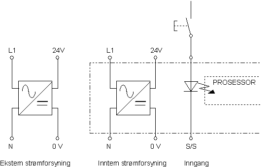 får strøm, enten fra den strømforsyningen som er innebygd i PLS-maskinen,