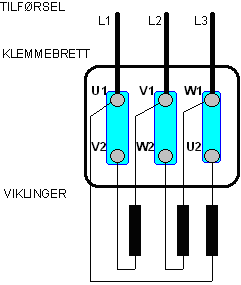 stjernekopling for den høyeste spenninga, og trekantkopling for den laveste. |